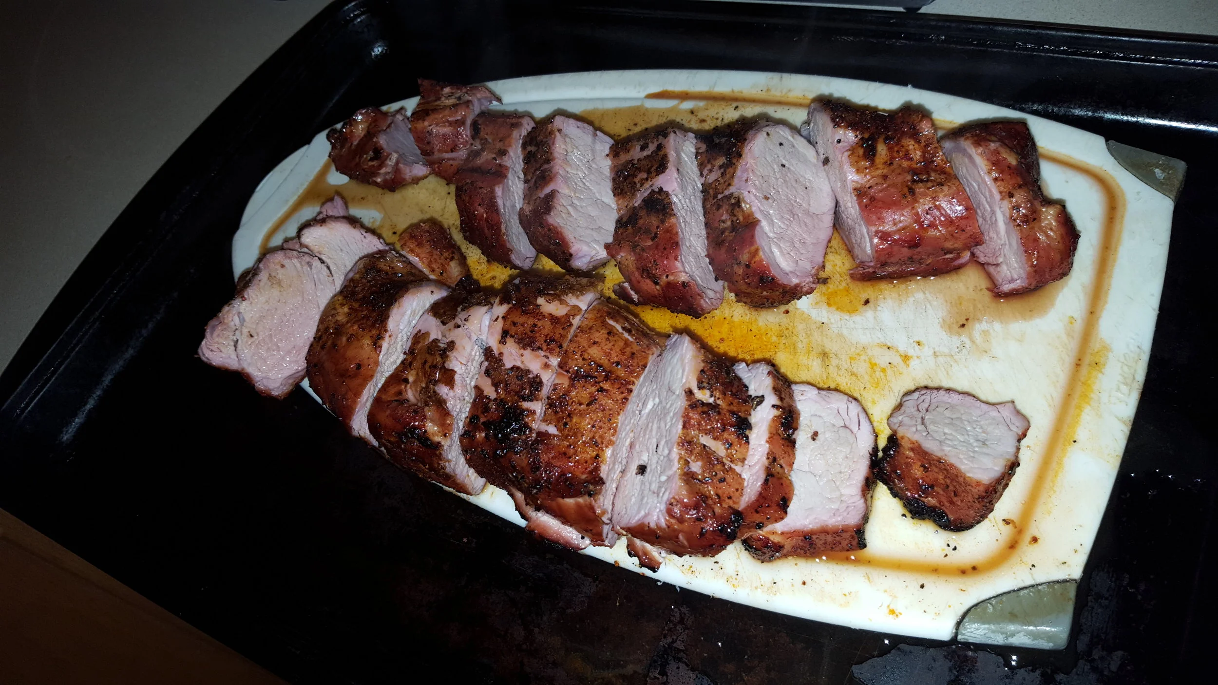 After resting for about 5 minutes, I sliced the tenderloin up. There was a nice smoke ring from the Fogo, and the meat was very tender and moist. I found this time around that the flavor of the rub was amplified, no doubt because I had used more. This time the pepper that was in the rub really struck me. It wasn’t spicy, but it did give the pork a nice kick. I also noticed that the pork had a nice crust, similar to the crust I get when using Hardcore Carnivore Black.