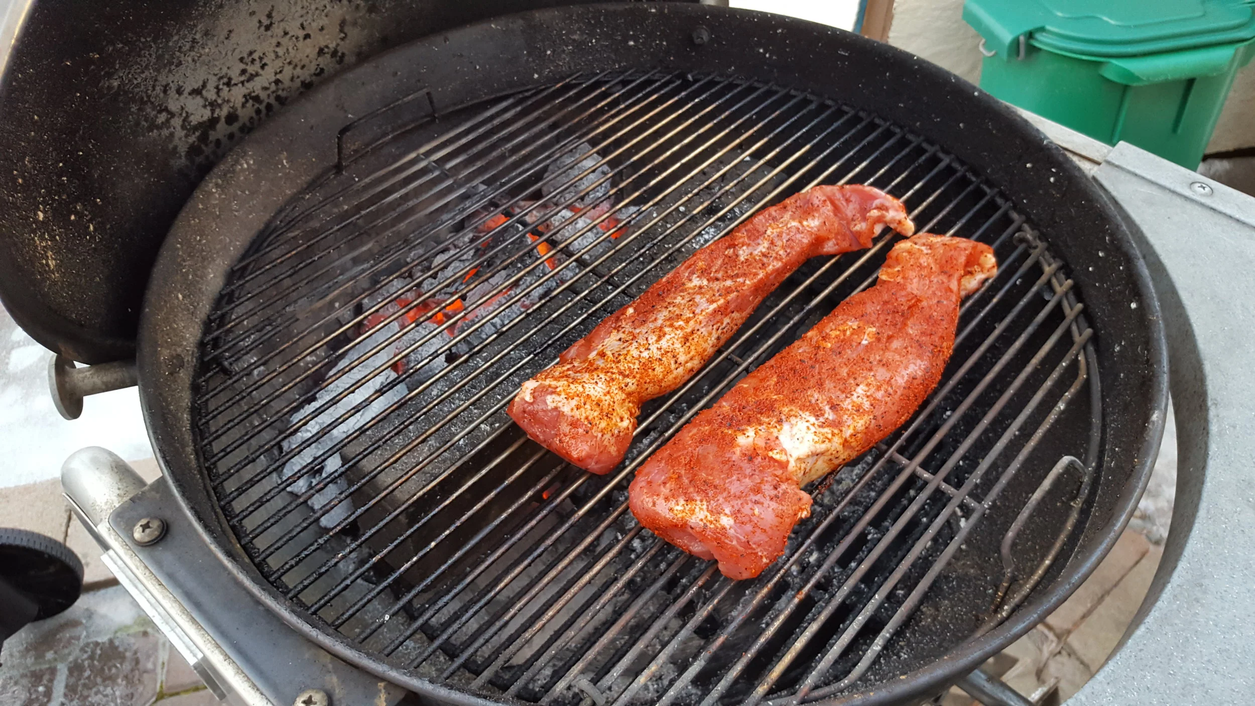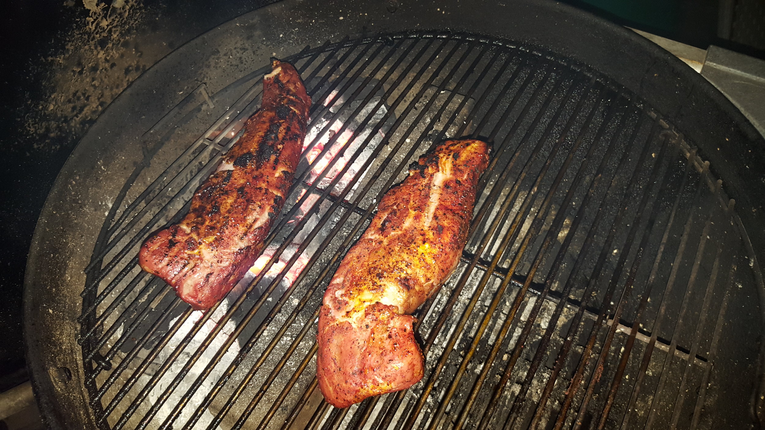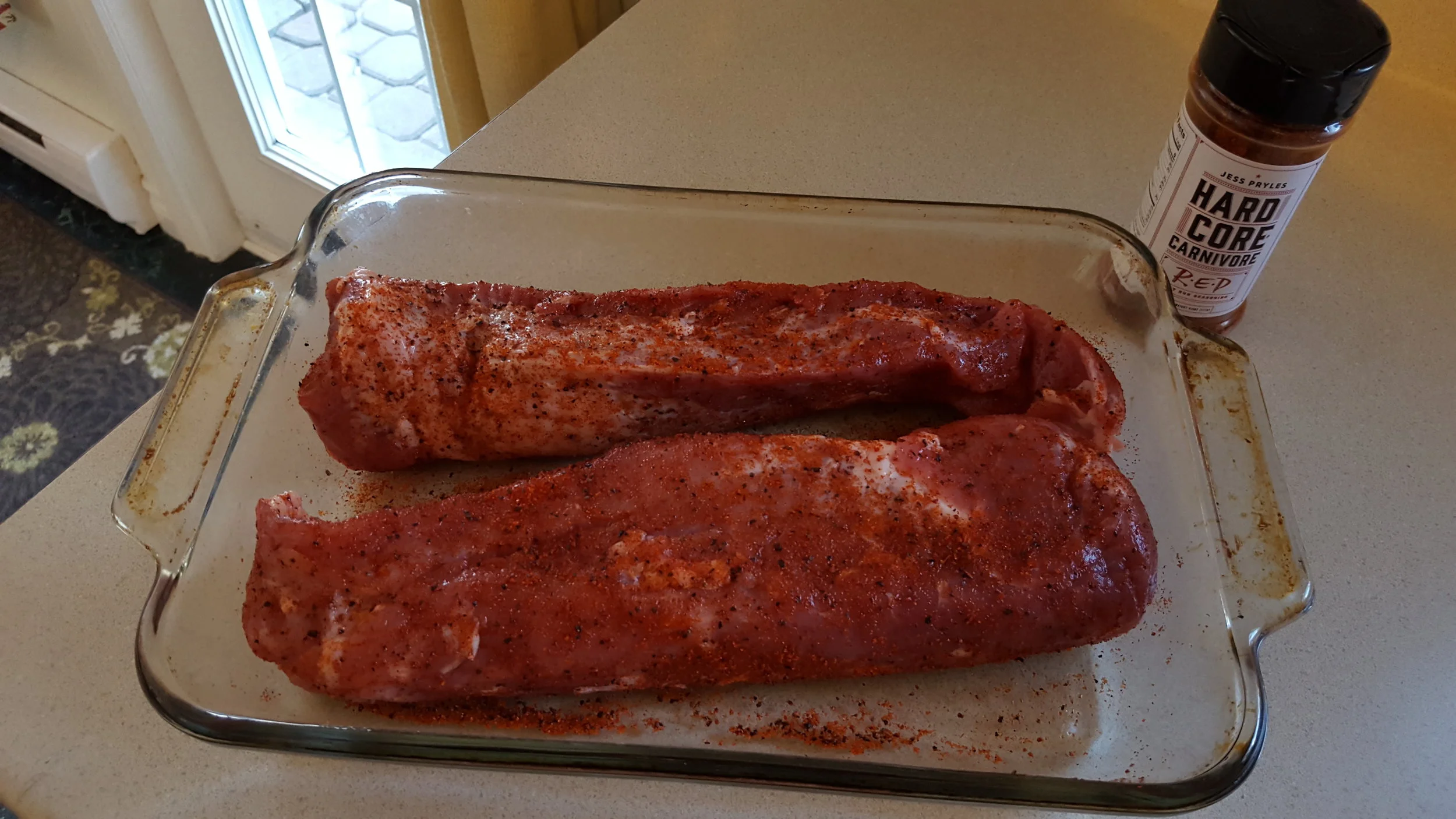 For my next cook, I moved onto something a little bigger – a couple of pork tenderloins. I had liked the flavor of the rub on my pork chops, so this time around I went a little heavier with the rub. I put the rub on the pork tenderloin, and then laid them in the fridge for an hour or so.