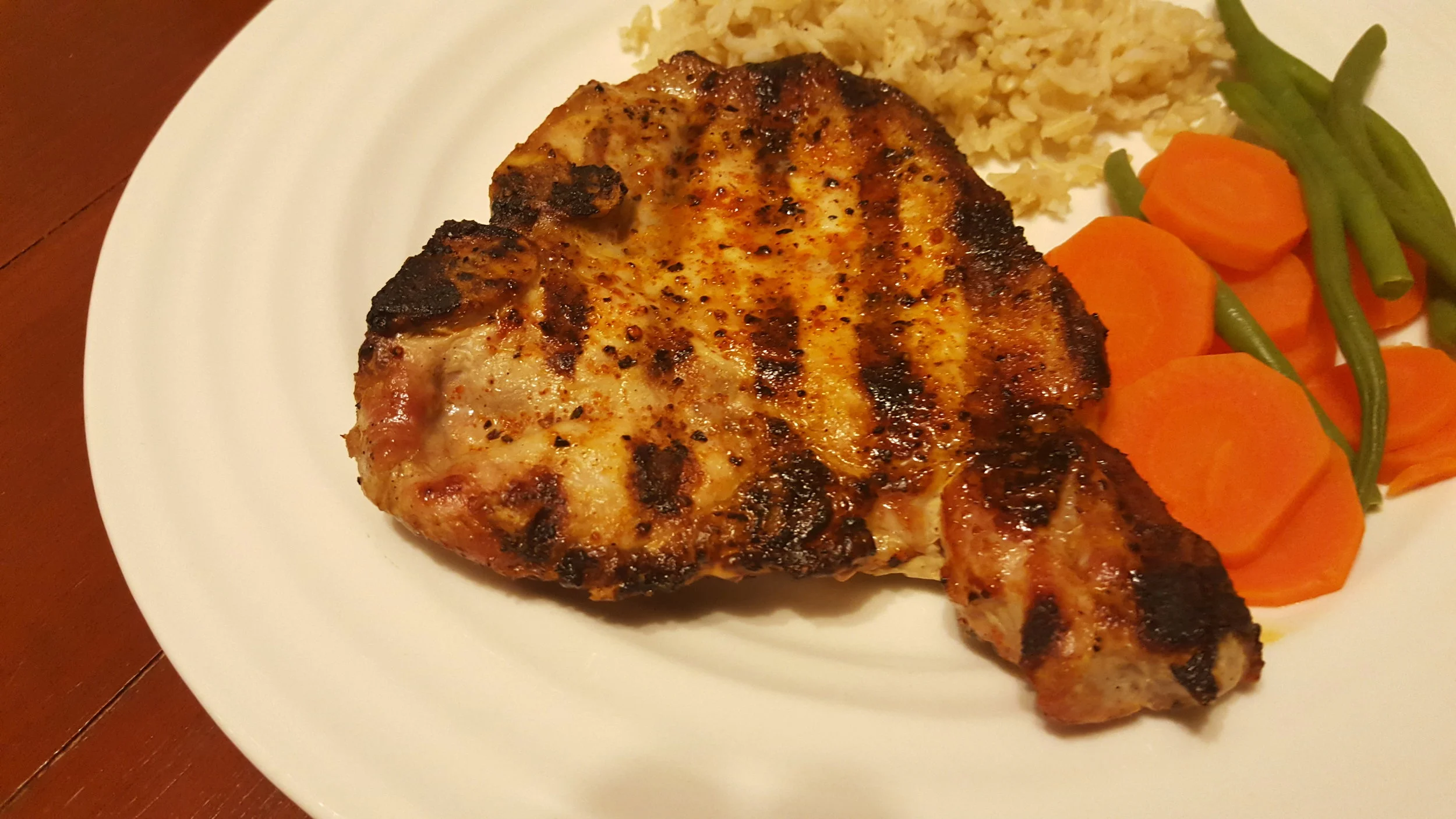My first cook was on a couple of bone-in pork chops on my gas grill. Before you hate on me for the gasser – I’m the father of a 2 year old who doesn’t understand yet that his food would taste better prepared over charcoal. He also doesn’t like to wait for his food. I also get off work at 5:00, and he goes to bed at 7:00. So, yeah a gasser is kinda necessary if I want to get any weeknight grilling in.